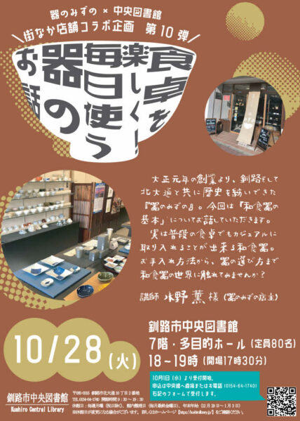 街なか店舗コラボ企画 第10弾(器のみずの×中央図書館)申込受付中! -